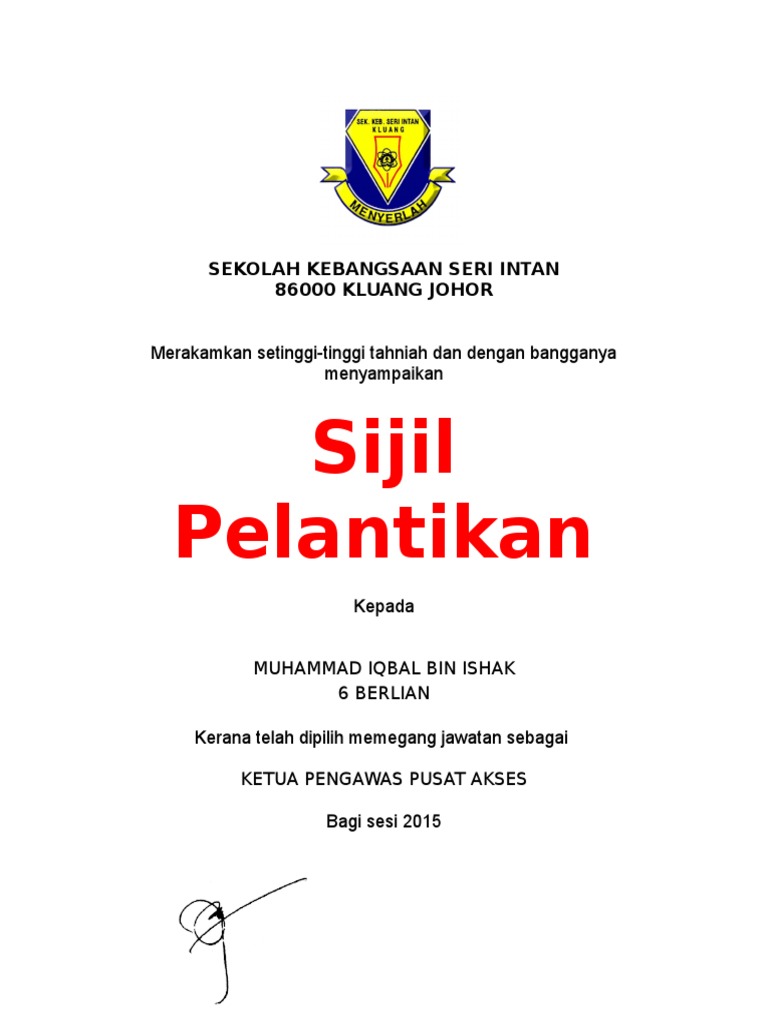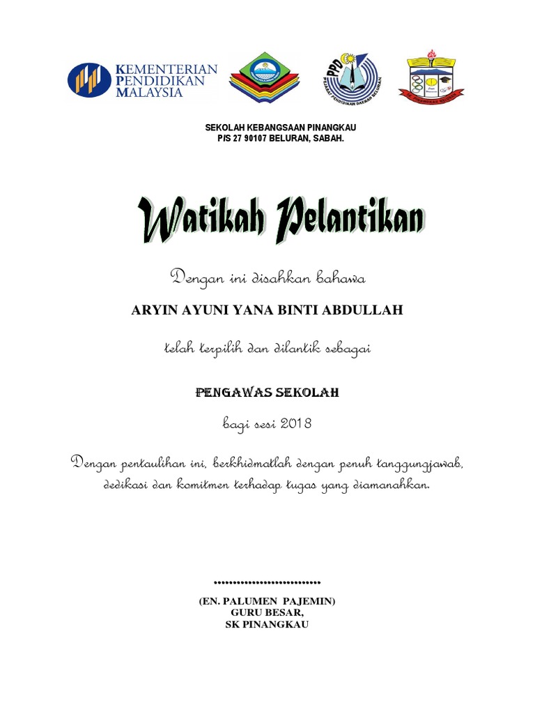Sijil Watikah Pelantikan Pengawas Pdf