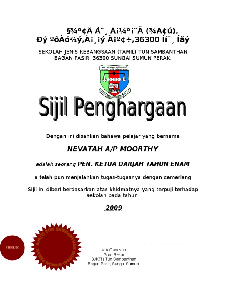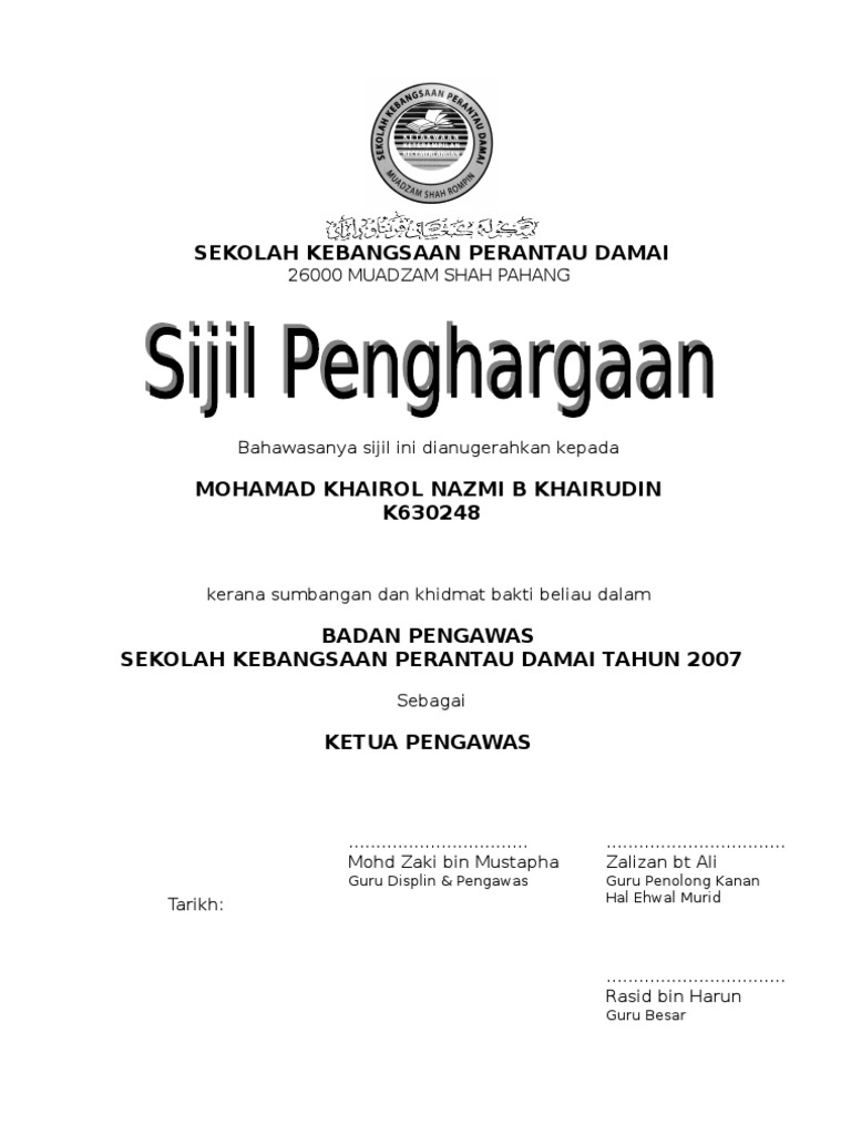 Sijil Penghargaan Pengawas Pss Pdf